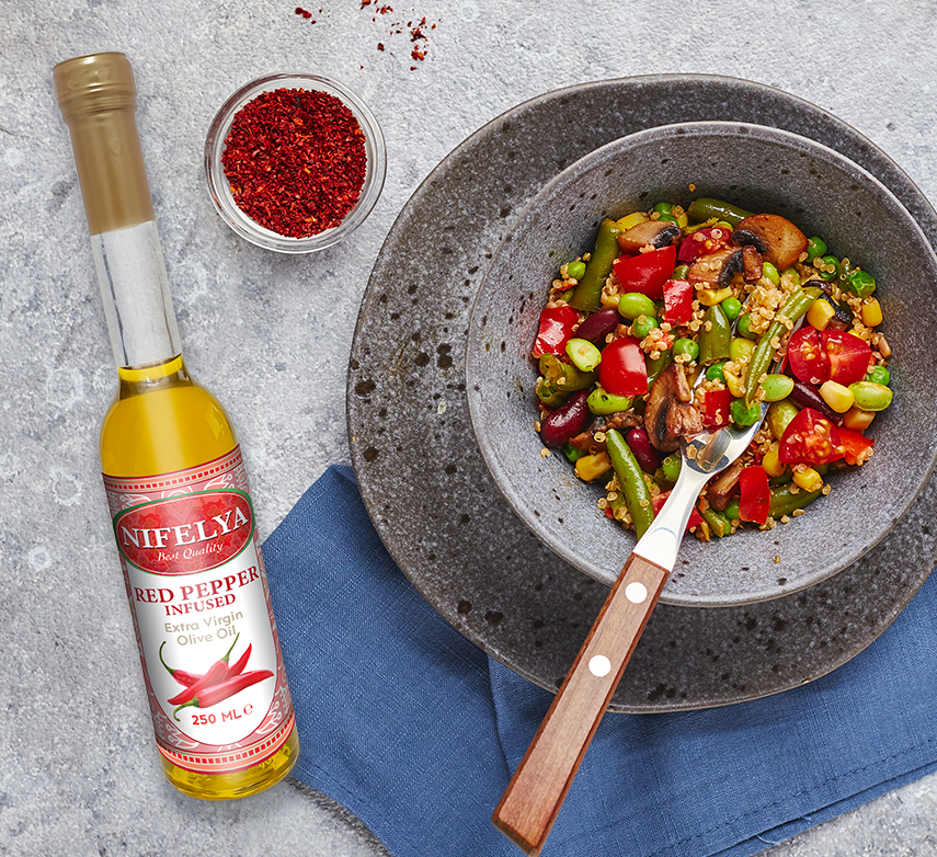 Demleme metodu ile imal edilen çeşnili yağlarımızda hiçbir kimyasal aroma kullanılmamaktadır bahsi geçen çeşitlerin hepsi ürünün kendisinden elde edilmektedir. Bu sayede çeşnili yağlarımız, hem daha doğal tatlarda hem de daha sağlıklı olabilmektedir.